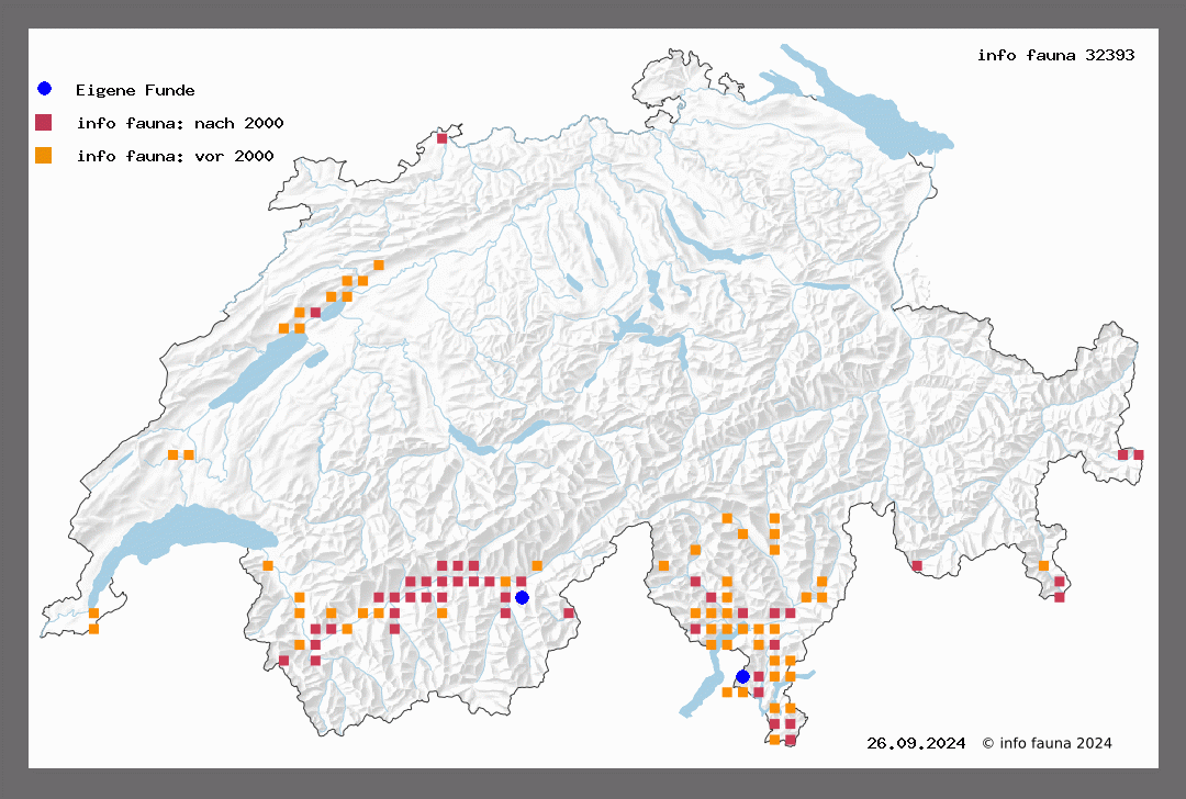 Ich habe aus am Altberg bei Zürich an Silene nutans gefundenen Raupen mehrere Exemplare gezogen, womit das schon durch Bremi bei Zürich erwähnte Vorkommen bestätigt wird. Ausserdem wurde der Falter erbeutet bei Biel(Rob.), Martigny, Fully (W.), Sion, Sierre (Paul), sodann ziemlich häufig bei Promontogno (Bergeil) am Licht (Hauri). Flugzeit im Mai-Juni, ausnahmsweise auch im August (Rob.).