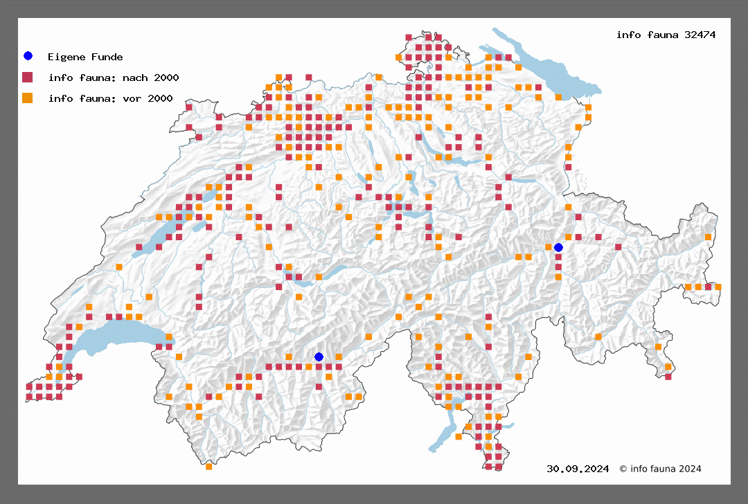 738. gutta Gn. (= circumflexa S. V.) - Sp. III, T 50. Der Falter, wohl ein Relikt der Steppenzeit, ist in der Ebene, dem Jura und bis in die Voralpen hinein überall verbreitet, aber meist nicht häufig. Er fliegt in zwei Generationen von Ende April bis Juni und von August bis November. Die Exemplare der zweiten Generation sind dunkler, die Innenhälfte der Vfl mehr rotbraun, Hfl ebenfalls dunkler (= aestiva Krul.). Die Raupe - Sp. IV, T 35 - lebt an heissen sonnigen Orten an Matricaria chamomillae und Artemisia campestris, auch an Achillea millefolium und Silene inflata von November bis April und im Juli. Aus anfangs September 1908 abgelegten Eiern schlüpften die Räupchen am 21. IX.; sie wurden teils mit Plantago, teils mit Löwenzahn gefüttert; beide Zuchten gediehen gut. Von der zweiten Oktoberhälfte an überwinterten die Räupchen fast erwachsen bis am 22. III. 1909. Vom 27. an spannen sie sich ein und waren bis am 10. IV. alle verpuppt. Die Kokons wurden zwischen Blättern angelegt und die Falter erschienen zwischen dem 26. IV. und 10. V. (Mong.). E. Favre 209 - Roug. 149 - Sp. I, 303.