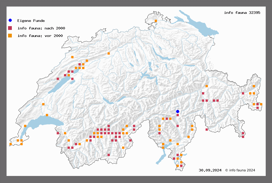 Ist ebenfalls eine Seltenheit. Der Falter fliegt an warmen, sonnigen Stellen, besonders auf Kalkboden von Mai bis Juli. Er geht im Gadmental bis 1500 m Höhe. Lenzburg, Oftringen, Othmarsingen (W.), Bechburg (R.-St.), St. Blaise, Biel (Rob.), Twann (v. J.), Tramelan (G.), Dombresson (Roug.), Neuchâtel(V.), Gorges de l'Areuse (P. Favre), Freiburg (T. de G.), Mt. Ravoire, Branson, Fully, Martigny (W.), Mt. Chemin (Favre), Sion, Sierre (Paul), Niouc (Steck), Berisal (Jäggi), Zermatt Ende Juni (1620 m, Püng.), Chur, Tarasp, Bergün, Bergell, Stelvio (Kill.).