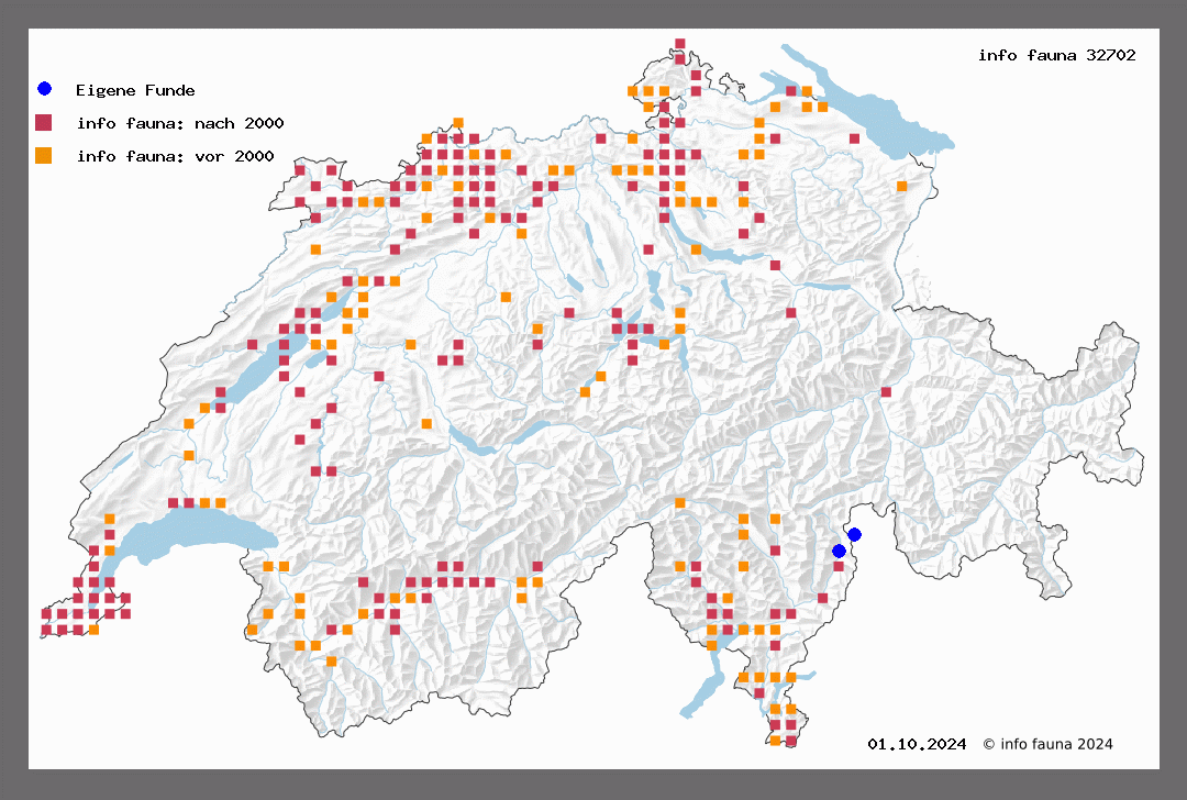 469. matura Hufn. (= texta Esp.) - Sp. III, T 39 - B. R. T 32 - Stz. III, T 44. Der Falter kommt in den ebeneren Landesteilen in weiter Verbreitung vor. Er ist aber durchaus nicht häufig. Flugzeit von Juli bis September. Aadorf (Z.-R.), Dübendorf (Corti), Zürich (V.), Aarburg, Oftringen, Lenzburg (W.), Basel (Knecht), Liestal (Seiler), Siselen, Büren (Ratz.), Neuveville (Coul.), Biel (Rob.), St. Blaise, Dombresson (Roug.), Langnau i. E. (Beut.), Bern (v. J.), Genf häufig (Mong.), Mt. Ravoire, La Croix (W.), Lostallo (Thom.).
