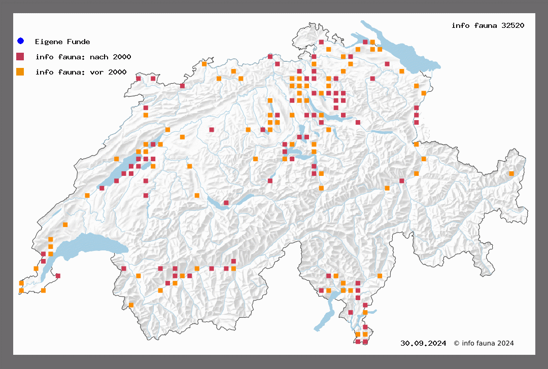 Die häufigere, rötliche Form. Der Falter fliegt im Juni-Juli an feuchten Stellen der Ebene, des Jura und der Voralpen. Nicht gemein. Frauenfeld (Wehrli), Schaffhausen