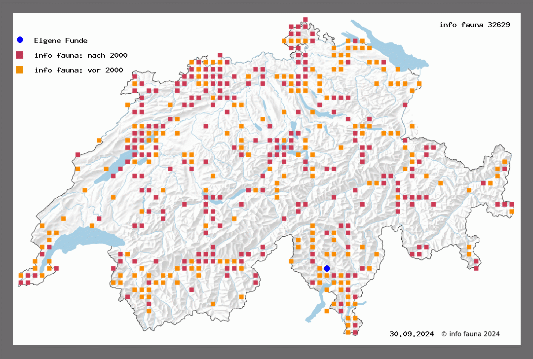 Falter von Mai bis Juli überall, bald häufiger, bald seltener. In den Alpen bis etwa 1600 m (Zermatt, Püng.). Man findet ihn über Tag an Stämmen sitzend, er fliegt auchgerne nachts ans Licht.