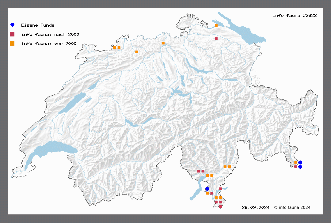 E. obliterata Rbr. Südliches Tier, das im Gebiet noch wenig beobachtet wurde, lebt auf Sumpfboden; 10.5.-15.8. Quartino (Gram.), Mendrisio a.L. (MR, Näg., Web.) - Raupe bis 500 m, an Sumpfgräsern; 25.6.-15.8. überw.