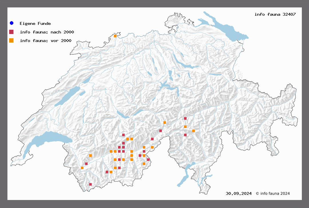 Sierre (Paul), Gamsen (And.), Brig, Visp, Evolena (v. J.), Berisal (Gram.), Laquintal (Pictet, Rehf.). Die Raupe - Sp. IV, T 35 - lebt an Linum, Ononis spinosa und repens, sowie Salvia pratensis im Juni-Juli und August-September, an den Blüten und Samen. Die Puppen der Sommerbrut überwintern. E. Sp. I, 281 - Favre 214 - Lamp. 193.