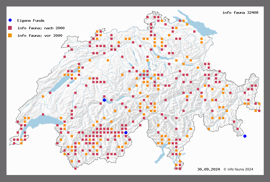697. peltigera Schiff. - Sp. III, T 50 - B. R. T 37 - Stz. III, T 50. Diese südliche, wanderlustige Art ist zwar in weiter Verbreitung im Gebiet in einzelnen Stücken getroffen worden, festen Fuss dürfte sie dagegen nur in der Südschweiz, im Wallis und vielleicht im Jura gefasst haben. R. Püngeler fing den Falter einige Male bei Zermatt; ein Stück am Gornergrat (3136 m). Flugzeit von Mai bis September. Die Raupe - Sp. IV, T 35 - lebt in den Samenkapseln von Bilsenkraut, Tollkirsche, auch an Ononis repens, Senecio, Ulex und Salvia im Juli-August und ist besonders auf Holzschlägen zu finden. E. Sp. I, 282 - Favre 214 - Lamp. 194 - Roug. 151.
