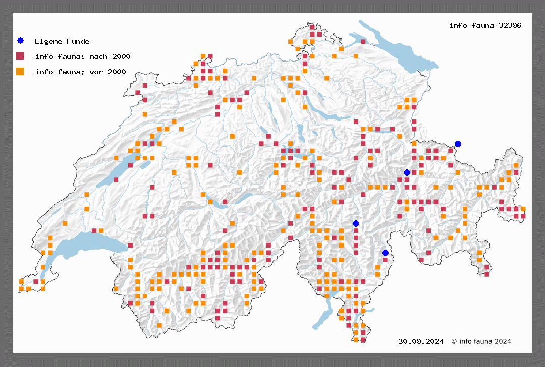 Ich halte sie für eine gute Art. Das Tier ist robuster, kräftiger als carpophaga Bkh. Die Vfl etwas breiter, ihre Grundfärbung dunkel olivbraun, nicht gelblich. Alle hellenZeichnungen rein weiss. Der Falter fliegt von Ende April bis Anfang August, je nach der Höhenlage. Er geht von der Ebene bis in Höhenvon 2000 m. Aarburg (W.), Biel (Rob.), St. Blaise (Roug.), Tramelan (G.), Bern (Hiltb.), Büren (Ratz .), Zermatt zu Hunderten (Püng.), Riffelalp (Favre), Salgesch (Roug.), Mt. Chemin (Favre), Martigny, La Forclaz (W.), Gadmental (St., V.), Airolo (V.), Erstfeldertal (L.), Ilanz (Caveng), Vals (Jörg.), Thusis (Cafl.), Cresta (Honegger), Landquart (Thom.), Chur (Cafl.), Tarasp (Kill.).