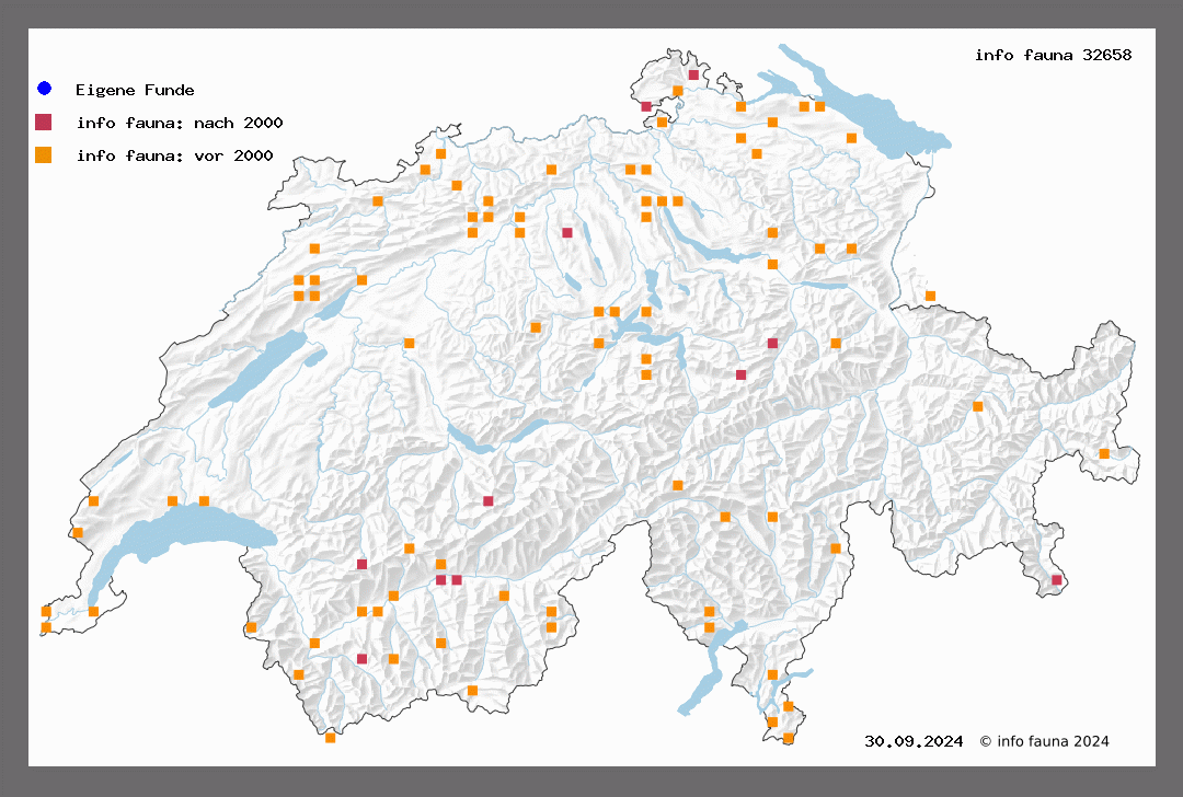 Der Falter ist sowohl in der Ebene und dem Jura, wie den Alpen gefangen worden. Er geht bis etwa 2000 m Höhe. Bern (Beut.), Oftringen, Lenzburg (W.), Sissach (Müller),