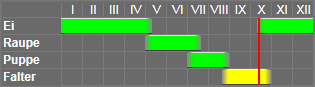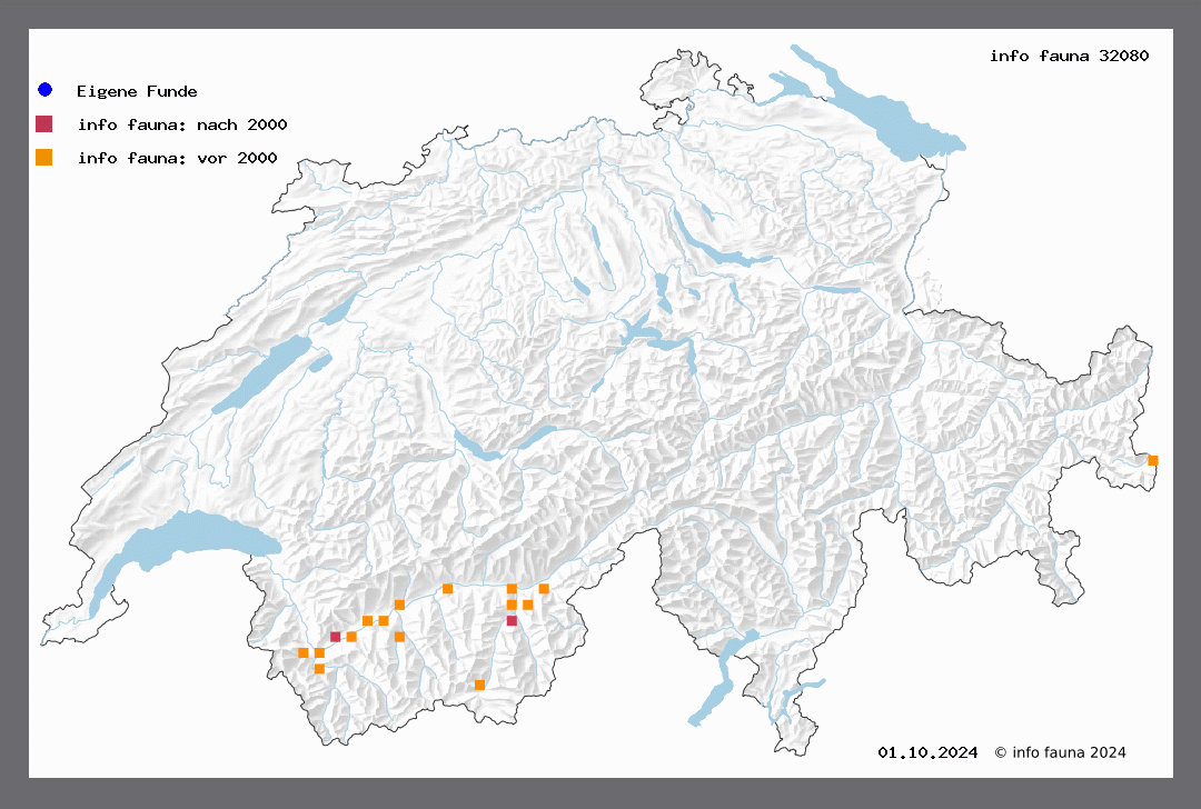 509. suda H. G. - Sp. III, T 38 - Stz. III, T 33. Der Falter nur im heissen Jura und Wallis; lokal und selten. Flugzeit von August bis Oktober. Bönigen, Olten (W.). Bern 1 Stück (v. J.). Mt. Ecoteaux, La Croix, Mt. Ravoire (Favre), Martigny, Saillon (W.), Gamsen, Stalden (Roug.), Follaterres, La Batiaz (V.). Die Raupe - Sp. IV, Nachtr. T III - lebt an Ononis natrix, Galium mollugo, Silene otites, Artemisia campestris u. s. w. im Mai und Juli. Eine am 3. Juli 1903 bei Martigny auf Galium gefundene Raupe verpuppte sich Mitte des