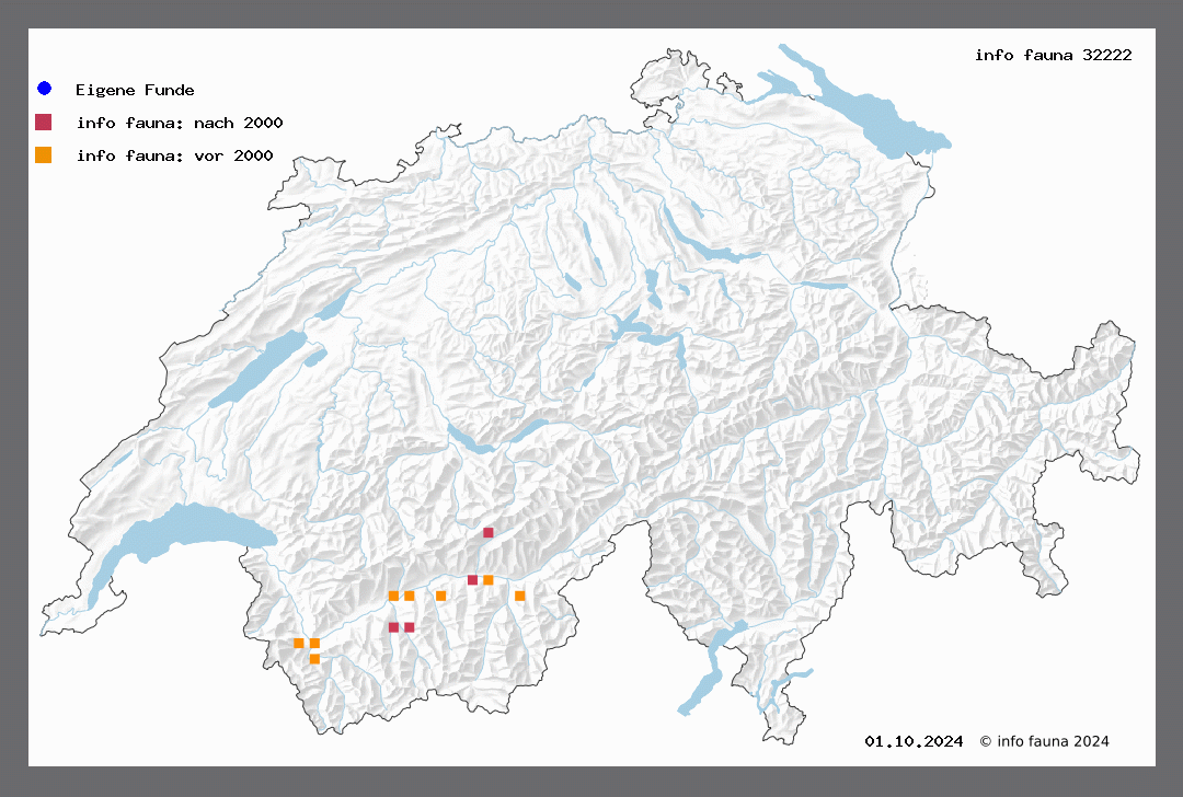 649. torrida Ld. - Stz. III, T 36 - Sp. III, T 30. Der Falter ist nur aus dem Wallis bekannt geworden. Er ist sehr selten und fliegt von August bis Oktober und nach der Ueberwinterung im März-April, zu welcher Zeit die Copula stattfindet. Plan-Cerisier, Mt. Ravoire, Mt. Chemin, Mt. des Ecotteaux (W.). Höhenverbreitung bis 1200 m. Die Raupe - Sp. IV, Nachtr. TV - lebt im Mai-Juni, in der Jugend an Schlehenblüten, später an Löwenzahn, Plantago und andern niederen Pflanzen. Sie verpuppt sich in einem leichten Cocon an der Erdoberfläche unter Moos. Bei der Zucht fand die Copula am 13. März 1894, die Eiablage am 14. statt. Die Eier sind anfangs gelblich weiss, später braun; das W legt sie mit Vorliebe in morsches Holz. Die Raupen schlüpften am 7. April. Sie sind gelbgrün mit rötlichem Kopf. Am 1. Juni waren sie verpuppt und ergaben die Falter vom 17. Juli an (Wullschl.). E. Favre 194 - Sp. I, 257. 363 - Mitt. S. E. G. X, 289 - Stz. III, 148.