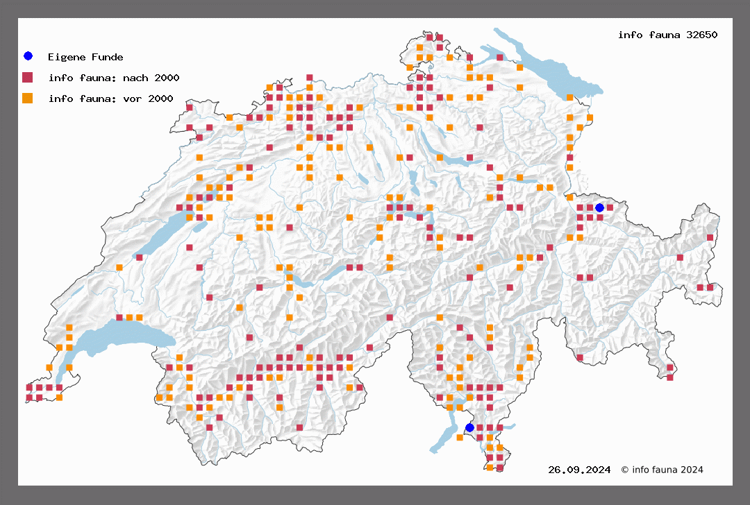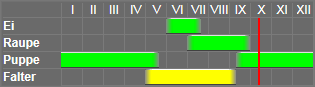 701. umbra Hufn. (= marginata F.) - Sp. III, T 51 - B. R. T 37 - Stz. III, T 46. Der Falter ist in der Ebene, dem Jura und auch in den Voralpen verbreitet, meist vereinzelt, aber nicht selten - Flugzeit im Juni-Juli, gerne auf Streuewiesen. Er erreicht noch Zermatt (1620 m, Püng.). Die Raupe - Sp. IV, T 36 - lebt an Ononis spinosa und arvensis, Euphrasia officinalis, Geranium pratense im Mai-Juni und von Juli bis September. Mordraupe! E. Sp. I, 284 - Favre 215 - Lamp. 194 - Roug. 152 - B. R. 267 T 37 - Stz. III, 227.