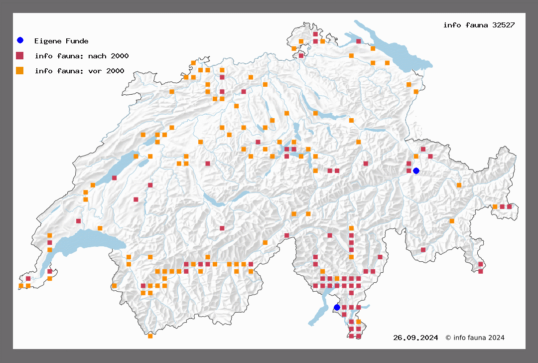 Habitat: | offene Habitate. In der S-Schweiz ist die Art seit etwa 1990 heimisch und nicht selten: Ruderalgesellschaften, grasreiche, anthropogen geprägte Habitate |