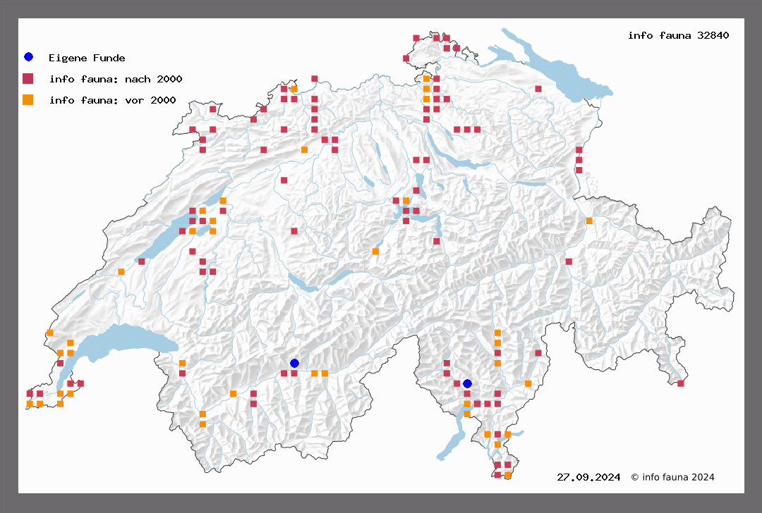 Eine in nur ganz wenigen Stücken beobachtete Art. Flugzeit im Juli. Grassier (Loriol), Martigny, Ardon (W.), La Croix (Favre), Salgesch (Roug.), Igis (Thom.).