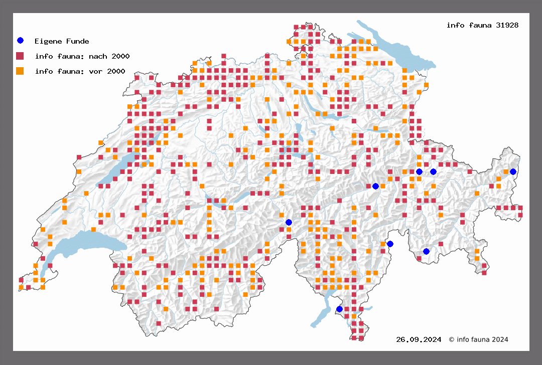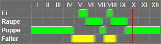 a) giraffina Hb. - Sp. I, 99. Ist bei uns die Gebirgsform und steigt bis über 1500 m. Sie ist grösser, dunkler, fast schwärzlichbraun. Sie kommt besonders im Gadmental vor und dann nicht selten in Graubünden, dort nur in einer Generation von Juli bis September. Die Raupe - Sp. IV, T 20 - lebt an fast allen Laubbäumen gesellschaftlich von Mai bis Juli und von August bis Oktober. Die Puppen der zweiten Generation überwintern. Ein im Juli in Copula gefundenes w legte die Eier leicht ab; die Räupchen wurden anfänglich im Glase gezogen, später im Zuchtkasten und mit Erle gefüttert. Die Puppen überwinterten im Zimmer und lieferten die Falter von Februar bis April. E. Ent. Jahrb. VI, 162 - Roug. 75 - Sp. I, 99 - Favre 116 - B. R. 108, T 23 - Frio. II, 327.