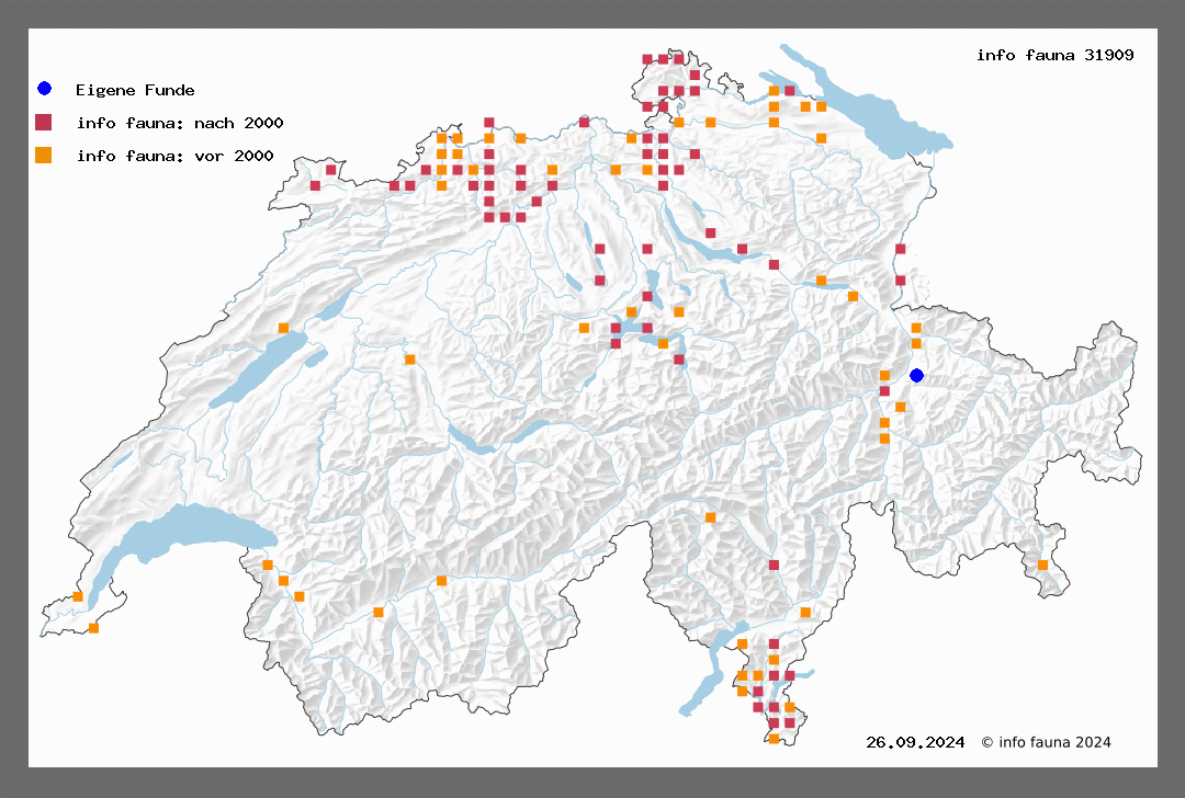 221. querna F. - Sp. III, T 22 - Stz. II, T 45. Bei uns nur im Tieflande als Seltenheit, hie und da gefunden. Flugzeit von April bis Juni. St. Gallen (M.-R.), Ossingen (Stierl.), Zürich, Thusis (V.), Engelberg (Solothurn) (W.), Neuchätel (Roug.), Tramelan (G.), Genf (Aud.), Salgesch (Roug.), Sion (Paul). Die Raupe - Sp. IV, T 20 - lebt an isoliert stehenden Eichenbüschen im Mai-Juni und von August bis Oktober. Man findet sie über Tag auf der Unterseite der Blätter sitzend. Verpuppung in einer Erdhöhle. E. Ent. Jahrb. VI, 160 - Favre 116 - Roug. 75 - Sp. I, 95 - Frio. II, 307.
