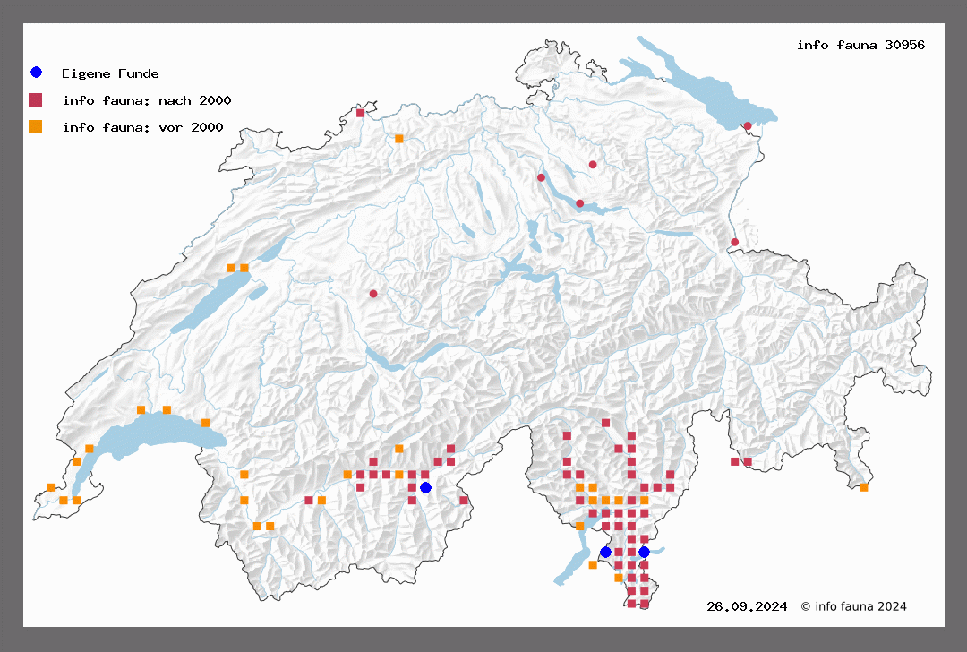 254. pyri Schiff. - Sp. III, T 24 - B. R. T 27 - Stz. II, T 31. Der Falter kommt mehr vereinzelt im Westen unseres Gebietes, namentlich an den Ufern des Neuenburger-, Murtner und Genfersees vor, aber auch sonst in der Waadt, so bei Ollon, Vufflens, Crans, Lavey (Sauss.). Sodann, stellenweise recht häufig, im Wallis und besonders in der Südschweiz. Er geht im Tessin bis etwa 800, im Vispertal bis 900 m Höhe. Flugzeit im Mai. Der Falter scheint aber auch, wohl nur ganz ausnahmsweise, im Herbst zu fliegen. Prof. Göldi sah am 15. Oktober 1910 drei bis vier Stück in Locarno am elektrischen Licht fliegen. Seiner Ueberzeugung nach, war Verwechslung mit Attacus cynthia L., die in Tessin gelegentlich im Herbst auftritt, ausgeschlossen. Zahlreiche Hybriden*) sind gezogen worden: