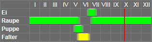 Raupe polyphag an Laubbäumen und Stäuchern.