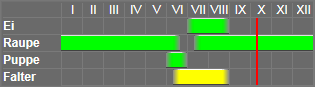 822. flaveolaria Hb. - Sp. III, T 56. Der Falter fliegt von Juni bis August auf trockenen, sonnigen Grasplätzen, mehr in den gebirgigen Landesgegenden. Seine Höhenverbreitung reicht im Wallis bis etwa 1800 m. Die Raupe - Sp. IV, T 39 - lebt von Juli bis Mai an niederen Pflanzen, deren welke, abgestorbene Blätter sie verzehrt. E. Sp. II, 6 - Favre 233 - Frio. III, 96 - B. R. 311.