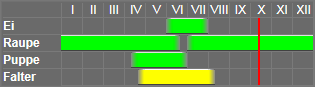 Lebenszyklus: Einbrütige Art. Im Süden ev. partielle 2. Generation.