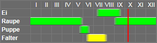 und sind im Mai erwachsen. Ich fand die jungen Raupen beim Puppengraben im Winter öfter, einzeln in dürren Lindenblättern. Es ist bei der Zimmerzucht schwierig, sie im Frühling zum Fressen zu bringen; immer geht ein Teil der Raupen dabei zugrunde. Sehr leicht ist die Zucht, wenn die Raupen im Frühling aufgebunden werden können, Sie beginnen anfangs Mai zu fressen und sind nach etwa fünf