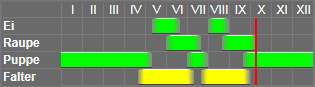 Der Falter gehört mehr der Ebene und dem Hügellande an, ist aber auch im Jura und den Alpentälern verbreitet und nicht selten. Flugzeit in zwei Generationen von April bis Juli und im August-September.