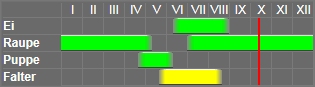 Lebenszyklus: die Raupe überwintert. Die Art ist univoltin