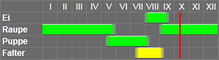 Raupe polyphag an Laubhölzern und krautigen Pflanzen