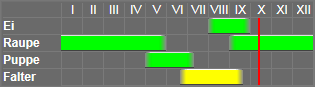 Raupe nachtaktiv, polyphag an Gräsern und Pflanzen der Kraut- und Strauchschicht, tags verborgen