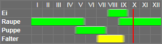 Lebenszyklus: | Die Raupe überwintert |