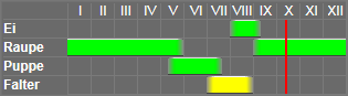 Die Raupe - Sp. IV, Nachtr. TV - lebt an Tussilago und Verbascum im Mai.
