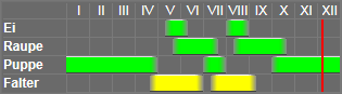 Raupe an Linaria, Antirrhinum, Delphinium. Puppe in einem Erdkokon
