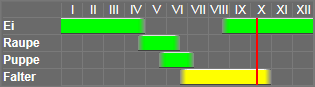 Die Raupe - Sp. IV, T 30 - lebt an Obstbäumen, Pappeln, Eichen, Weissdorn, Liguster im Mai-Juni. E. Sp. I, 238 - Roug. 124 - Lamp. 178 - B. R. 237, T 33 - Stz. III, 168 - Favre 183.