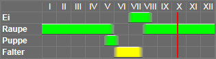 Die Raupe - Sp. IV, Nachtr. T II - lebt an Disteln, Anagcallis und andern niedern Pflanzen von November bis April-Mai.