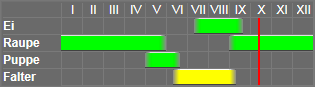 Lebenszyklus: 1 Gen./Jahr. Die Raupen überwintern